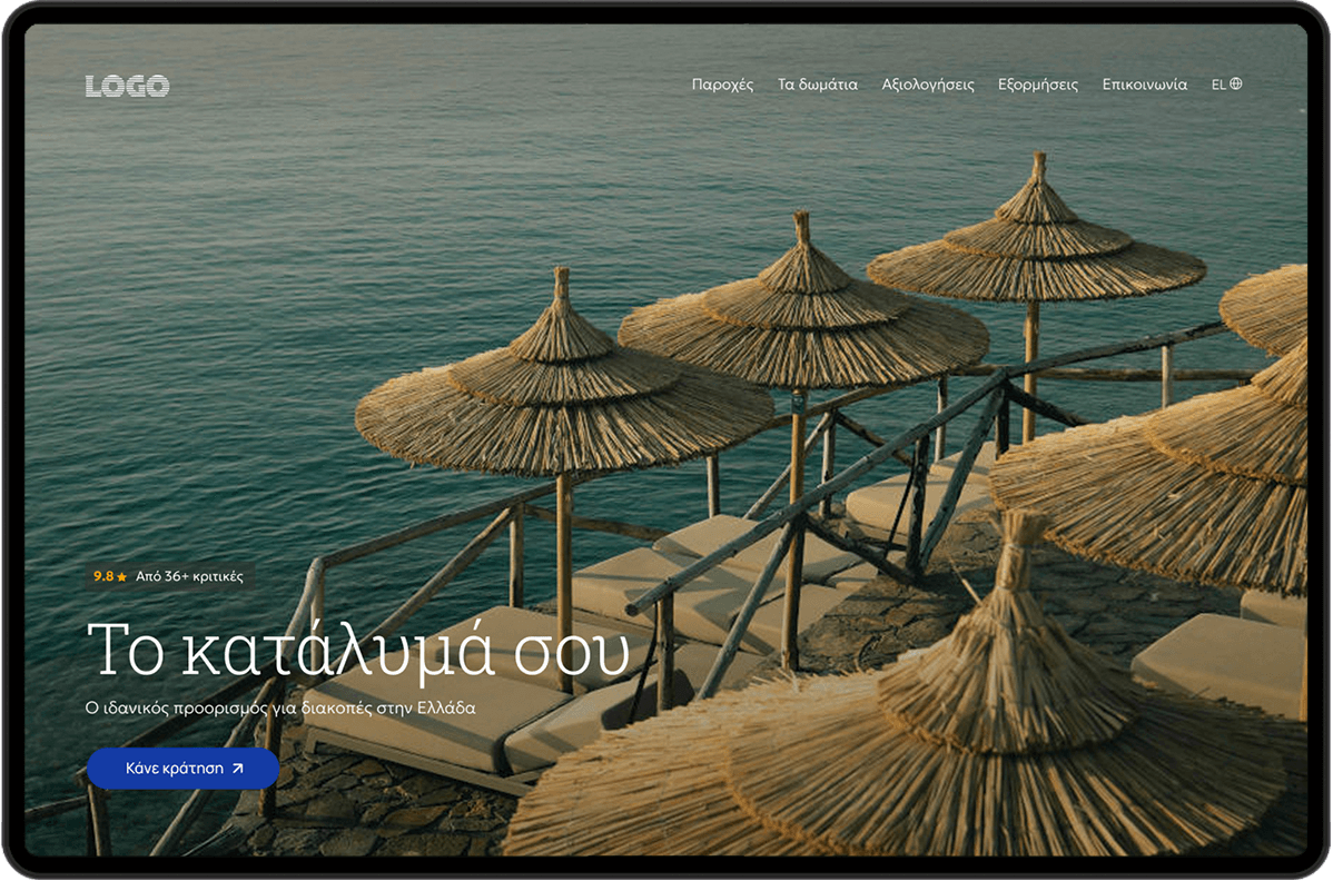 Ετοιμάζουμε τον σχεδιασμό της σελίδας, το domain και τέλος τα στοιχεία πληρωμής, ώστε τα χρήματα των κρατήσεων να πηγαίνουν απευθείας στον λογαριασμό σου, χωρίς μεσάζοντες.